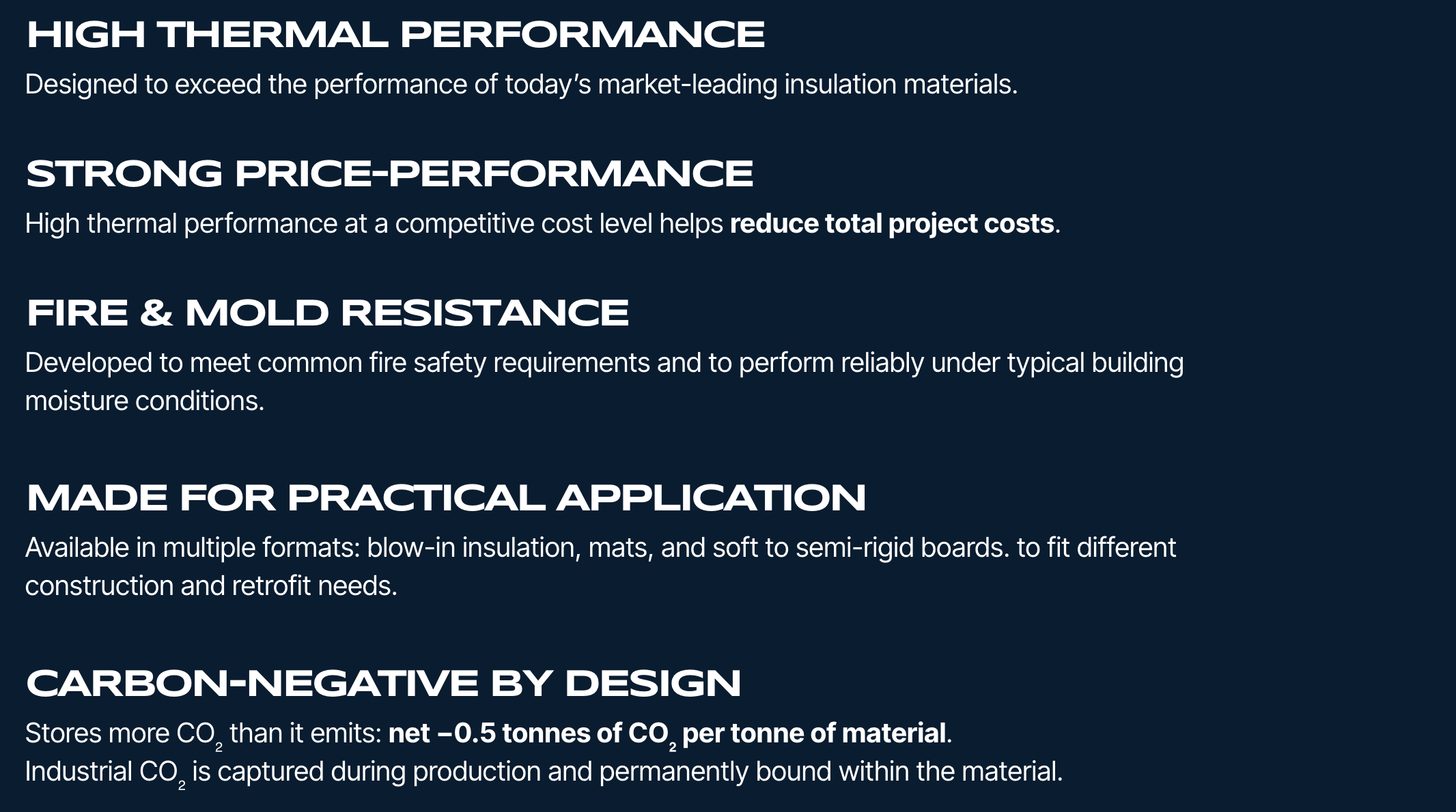By storing CO₂ in the material and avoiding emissions from conventional insulation, Ecolation targets a combined climate impact of up to 0.5 gigatonnes of CO₂ per year at scale.